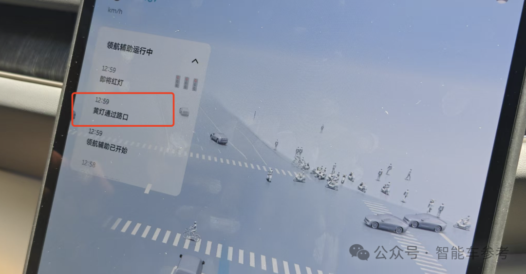 첫째는 ‘놀라움’으로, 니오 NWM이 상당히 ‘인간적인’ 운전 스타일을 보여준다는 점이다. 연속 차선 변경이나 노란불 통과 등 일반적으로 권장되지는 않지만 대부분의 운전자들이 실제로 하는 행동들을 자연스럽게 수행했다. 특히 흥미로운 점은 노란불을 통과한 후 시스템이 스스로 이를 인지하고 화면에 표시하는 기능까지 갖추고 있다는 것이다.