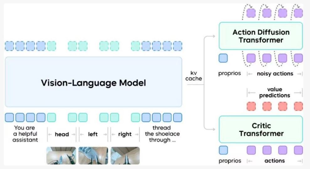 GR-RL은 단순히 데이터량을 늘리거나 훈련 시간을 연장하는 방식이 아니라, 구조적으로 추가적인 판별기 네트워크(Critic Transformer)를 도입했다. 이 네트워크는 각 동작 구간의 가치를 판단하여 동작 시퀀스의 모든 순간마다 점수를 매긴다.
