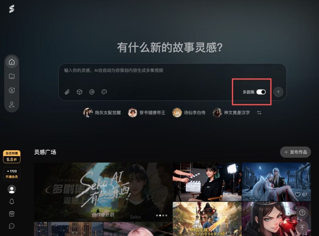 새로운 Seko 2.0은 사용자가 영상 생성 과정에서 캐릭터, 분할 화면(스토리보드), 이미지, 장면을 실시간으로 편집하고 상호작용 할 수 있도록 인터페이스를 대폭 개선했다. 대화창 하단에서는 영감 프롬프트를 직접 선택하거나 사용자가 원하는 프롬프트를 입력할 수 있으며, 대화창 내에서 대본 업로드, 모델 선택, 캐릭터 추가, 화풍 설정까지 가능하다.